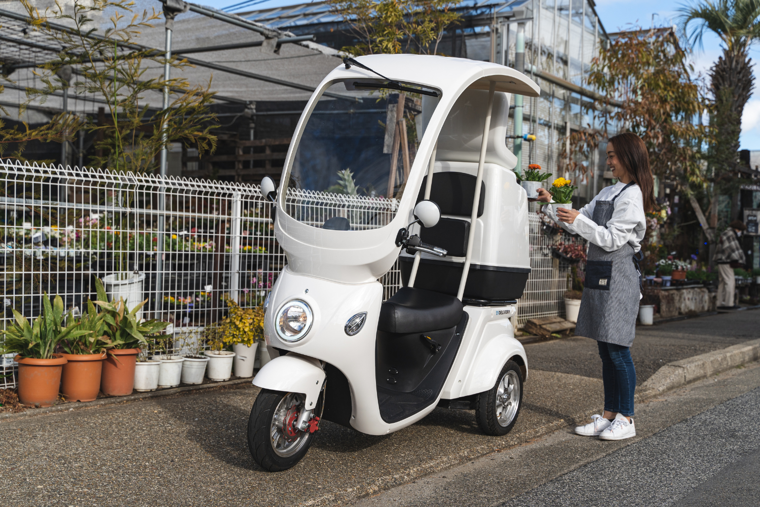 EVデリバリーは、静かで環境に優しい【3輪タイプの屋根付き電動デリバリーバイク】です。