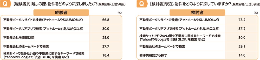 不動産情報サービスのアットホーム株式会社(本社:東京都大田区 代表取締役社長:鶴森 康史 以下、アッホーム)は、2024年7月~2025年7月の間に賃貸物件へ引越しを経験した人および2026年3月までに引越しを検討している18~59歳を対象に、住まいの探し方やオンラインでの手続きなどに関して経験者と検討者の違いを調査いたしました。