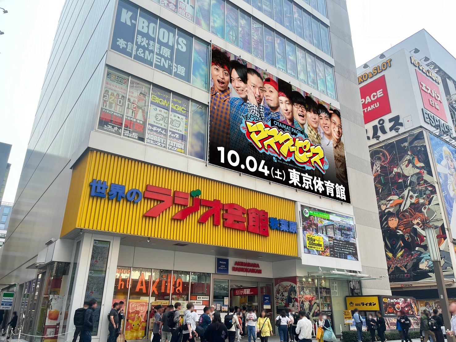 「REAL AKIBA BOYZ ONEMAN LIVE~ぼくらのマスターピース~」のオリジナルロゴ公開を記念して、2025年3月31日(月)から4月29日(祝・火)までの期間、秋葉原ラジオ会館に特大広告を掲出いたします。
