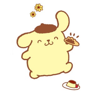 クリームシートを折り込んだパン生地にカラメルプリン風チョコダイスをのせ、プリン風味のビスケット生地を被せて焼き上げました。プリン風味のビスケット生地とカラメル味のチョコで「ポムポムプリン」をイメージしました。