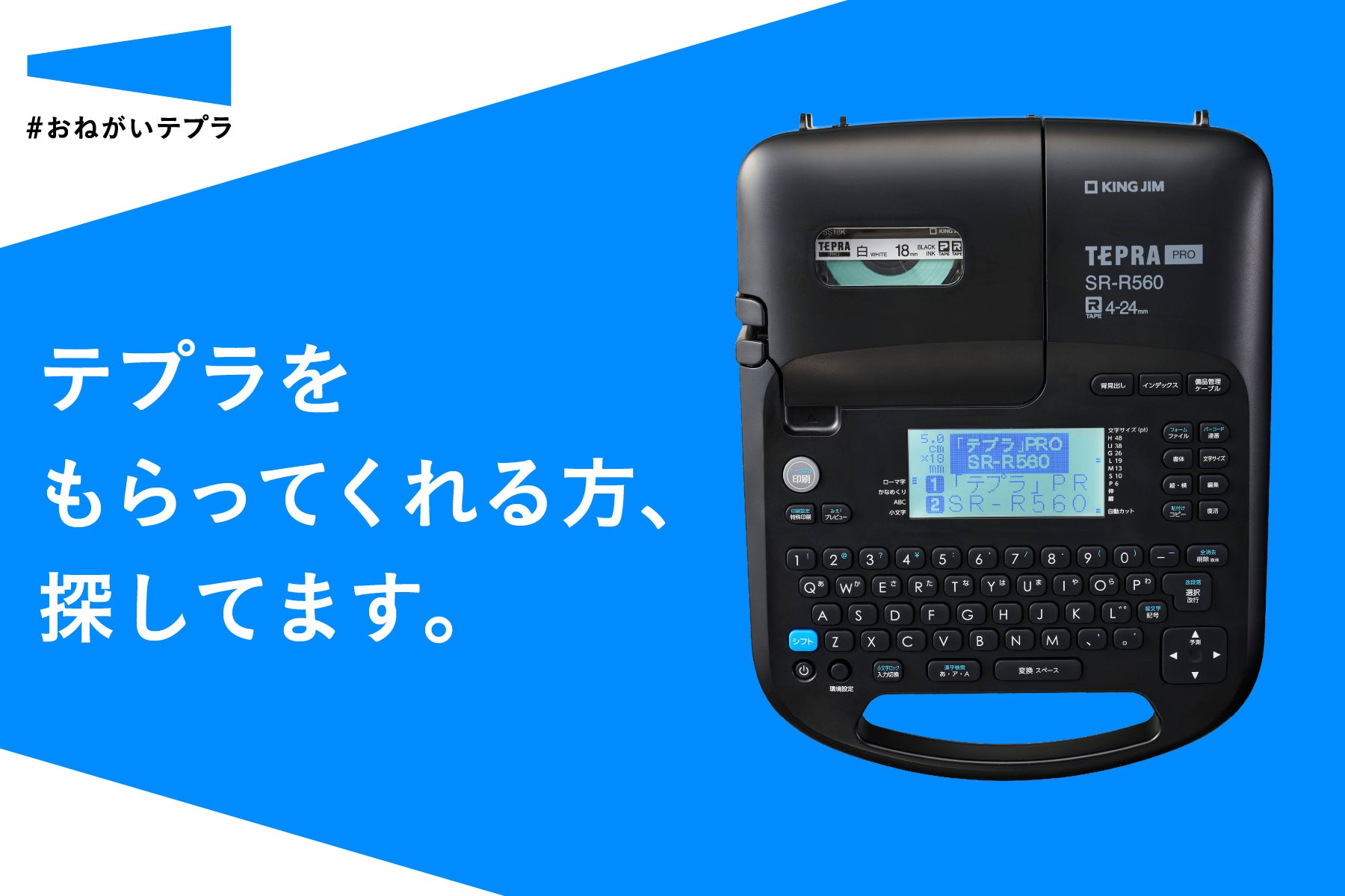 「テプラ」は誰でも簡単に使える機能性と汎用性により、工場・建設現場での注意表示や、病院・学校の案内表示、家庭での整理整頓やお名前付けなど、様々なシーンでご活用いただいております。今まで、「テプラ」の用途として多くの方に認知頂いていたのは「整理のためのラベリング」でしたが、今回の「#おねがいテプラ」キャンペーンでは、職場で出会う日常のお困りごとを「テプラ」の力で解決していくことを目指します。