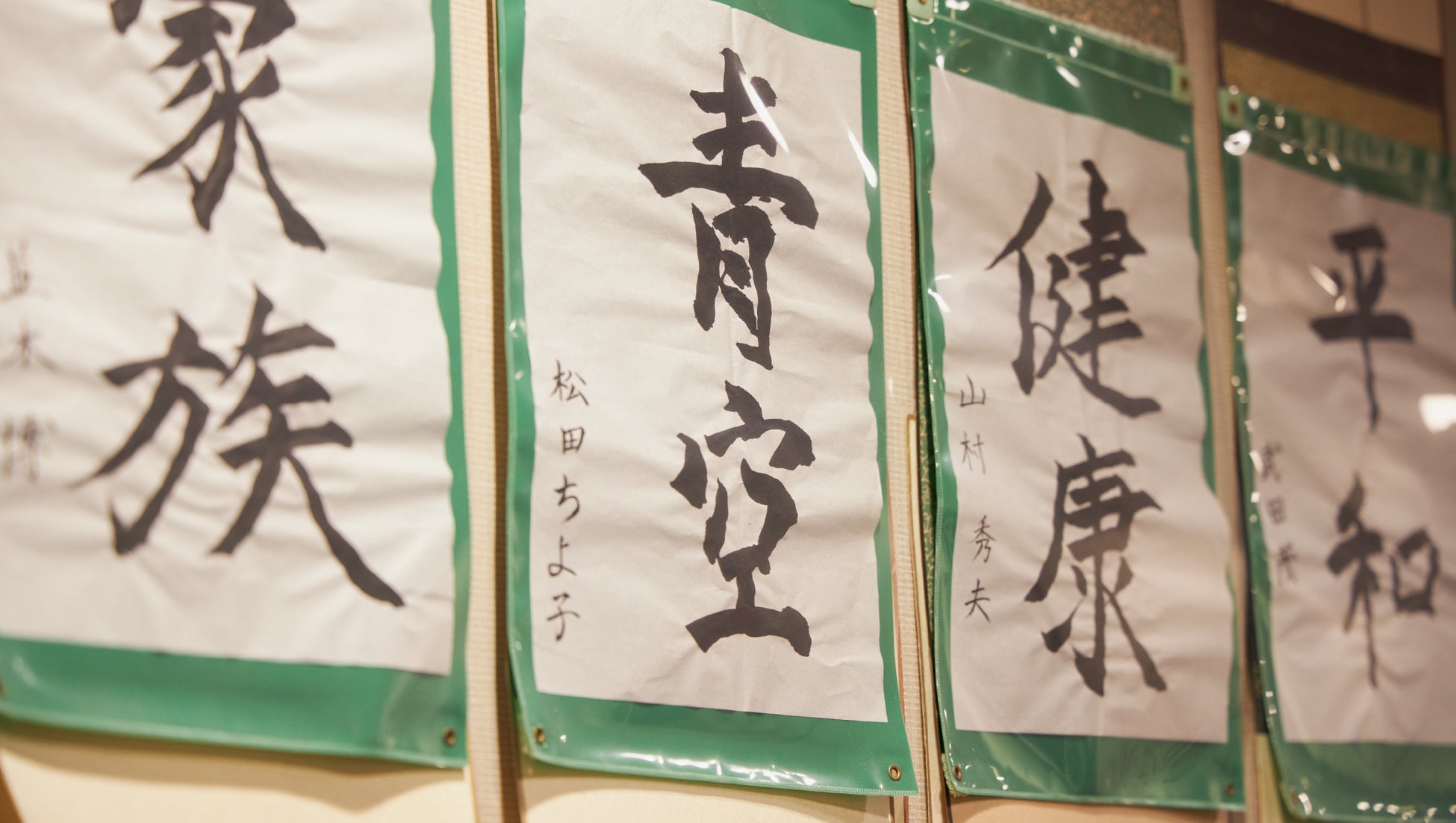 〈「テプラ」活用アイデア〉レクリエーションの書道作品を、そのままラベル化、ご家族にプレゼント