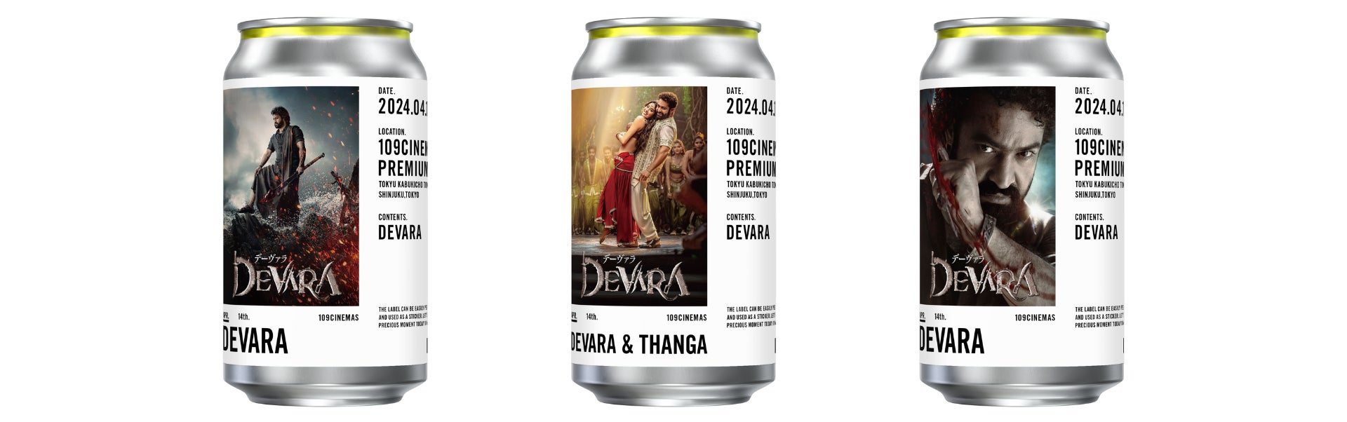 株式会社東急レクリエーション(本社:東京都渋谷区、社長:木村 知郎)は、2023年4月に開業した「東急歌舞伎町タワー」内に位置する「109シネマズプレミアム新宿」で、NTR Jr.主演最新作『デーヴァラ』の3月28日(金)全国公開を記念し、『デーヴァラ』と『RRR』のオールナイト上映を3月29日(土)~30日(日)にかけて実施します。また公開に伴い、キャラクターや写真などを飲料ラベルに出力し、その日、その場所だけの特別なオリジナルラベルドリンクが作れるサービス「TAG LIVE LABEL」の『デーヴァラ』『RRR』デザインを期間限定で販売します。