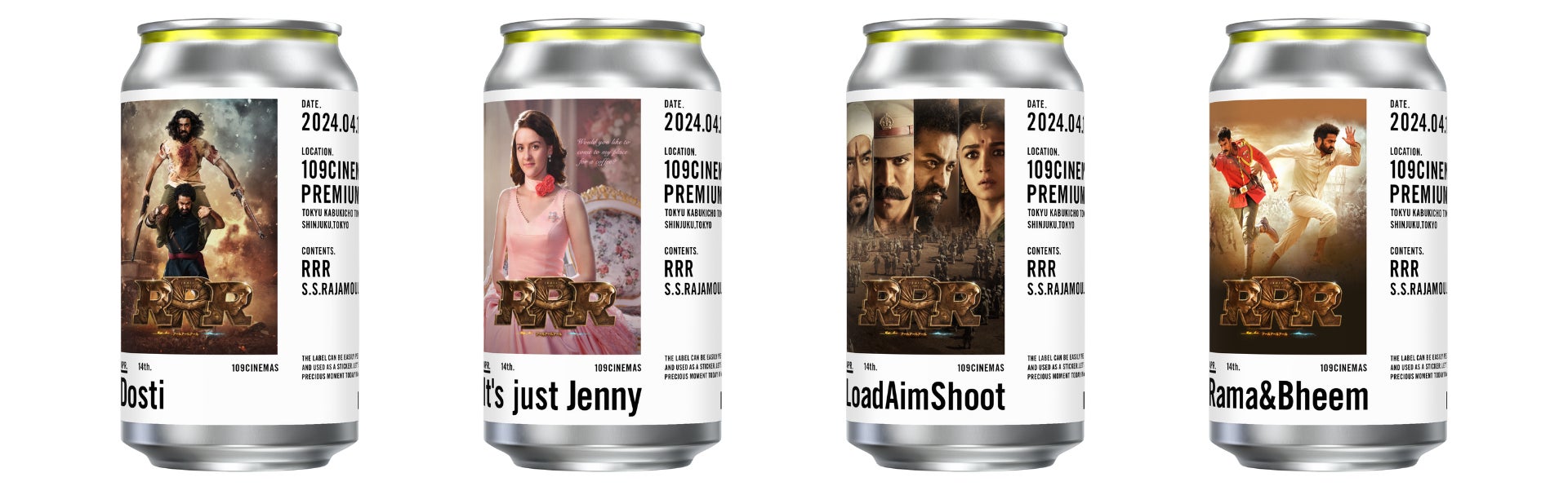 オールナイト上映開催に伴い、キャラクターや写真などを飲料ラベルに出力し、その日、その場所だけの特別なオリジナルラベルドリンクが作れるサービス「TAG LIVE LABEL」の『デーヴァラ』『RRR』デザインを一部劇場限定で販売します。『RRR』はオールナイト上映実施時期限定の再販です。
