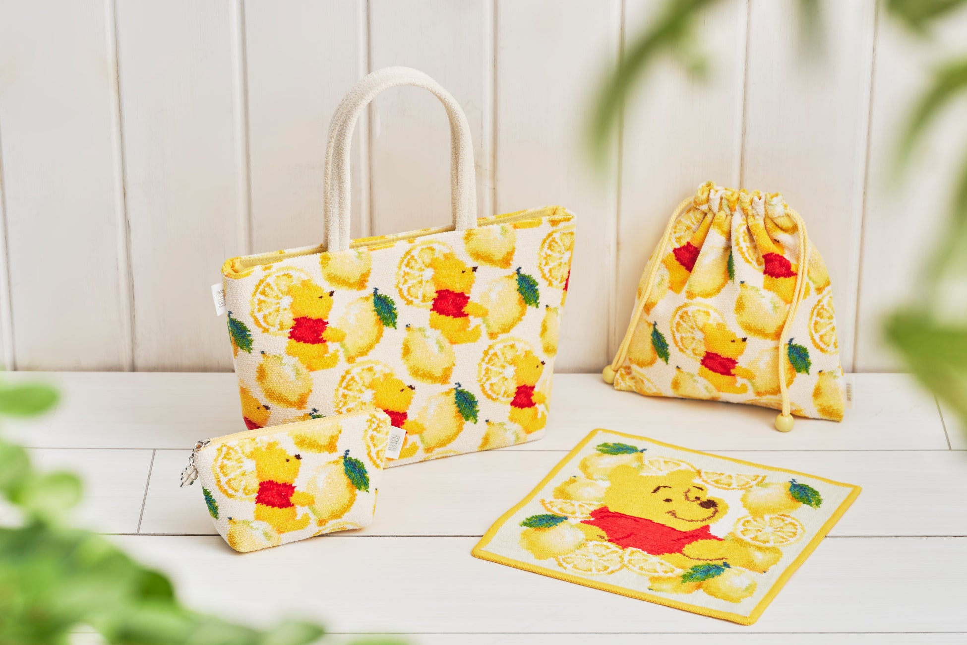 ドイツ伝統工芸織物シュニール織のブランド「FEILER(フェイラー)」との共同企画商品として、プーさんとレモンをシュニール織で繊細に表現したアイテムが登場します。プーさんの洋服の赤とレモンの葉の緑がアクセントになった上品な爽やかさと落ち着いた印象のデザインです。ラインナップは、ハンカチ、トートバッグ、ポーチ、巾着の全4種類。自分へのご褒美や大切な方へのギフトにもぴったりな、見ているだけでも気分が上がるアイテムです。