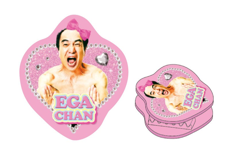 今回登場するアイテムは「エガちゃん」こと「江頭2:50」さんの顔写真が入ったキュートなデザインが特徴です。全アイテムをピンク基調とし、ヒョウ柄やハイビスカスのイラスト、ラインストーンを取り入れ、”平成ギャル”っぽいエネルギッシュなデザインに仕上げました。