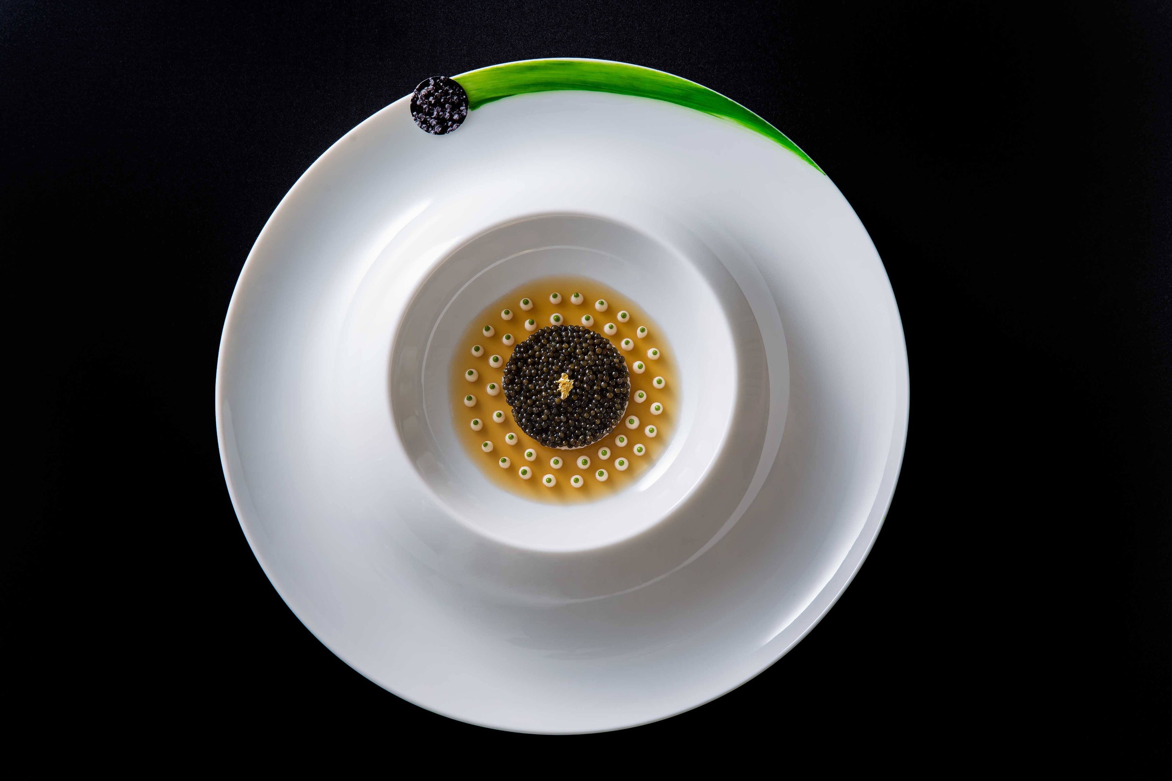期間限定の特別なコースは、ジョエル・ロブションの象徴的な一皿「キャビア・アンペリアル ロブションスタイル」、この季節ならではの白トリュフが香る「ゴンドール 香り高い白トリュフとコンテチーズのソースで」、スパゲティーで覆った帆立貝のムースに、スライスした白トリュフを飾った芸術的な一皿「北海道産ホタテ貝のテュルバン シャトーシャロンの香る軽やかなソースコライユ、白トリュフと共に」など、白トリュフをふんだんに使ったコースです。