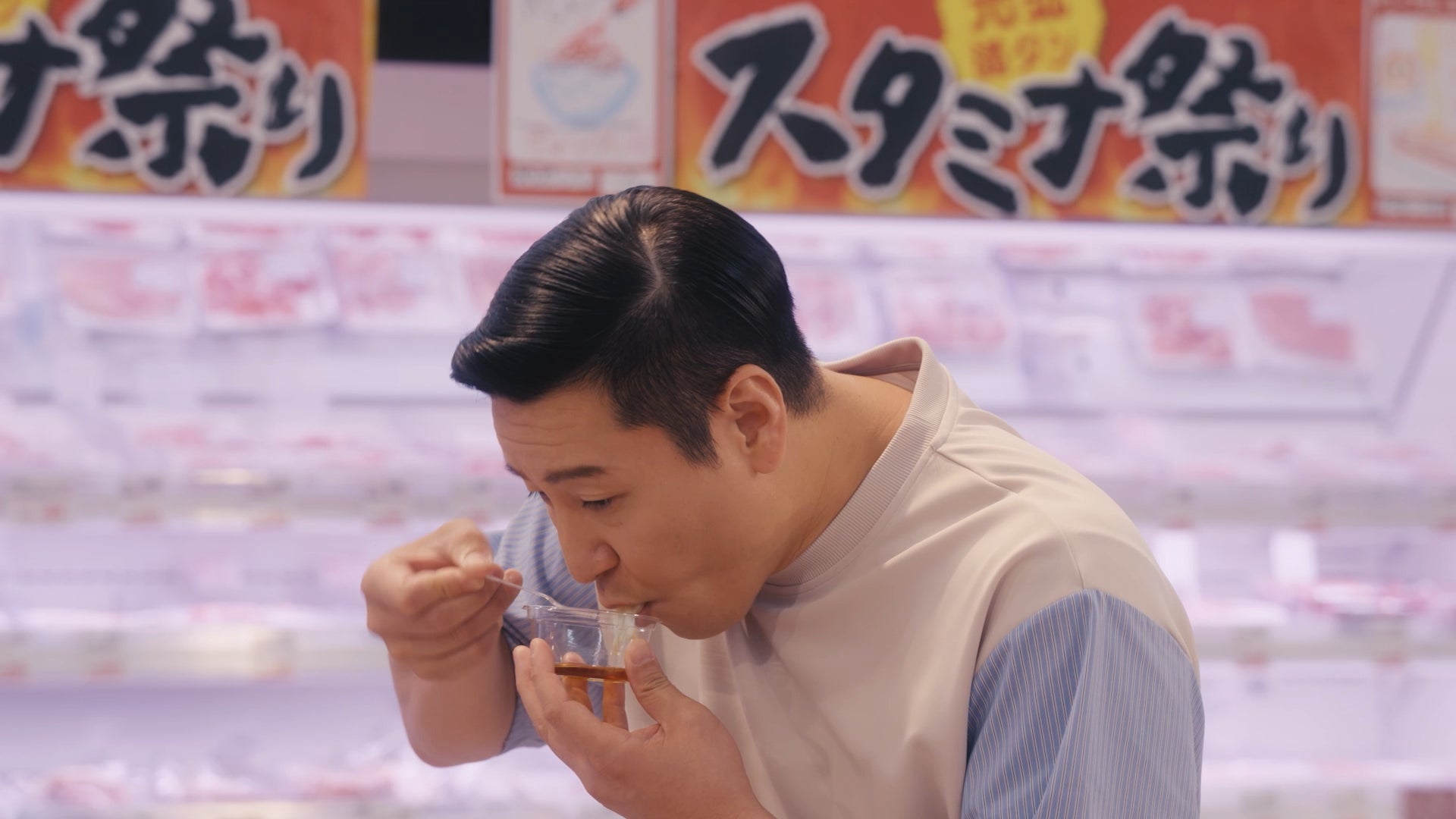とあるスーパーにて、試食のおばちゃんに扮した松尾さんが、昨日も一昨日もそうめんで飽きている長田さんに声をかけ、そうめんがおいしくなる“あるチューブ調味料”をおすすめします。松尾さんが、試食した長田さんにどれだけおいしいかを何度も聞きたくなるほどの、そうめんに合うチューブ調味料とは?