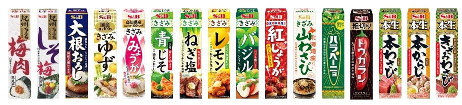 「わさび」「からし」などの定番から、味付けや刻む手間が省け、さまざまな料理に使える「きざみシリーズ」などの変わり種まで、幅広いラインアップを展開しています。