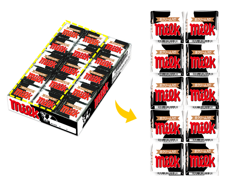 1990年発売のミルクは生クリームパウダー入りのまろやかなミルククリームをミルクチョコで包んだロングセラー人気商品です。