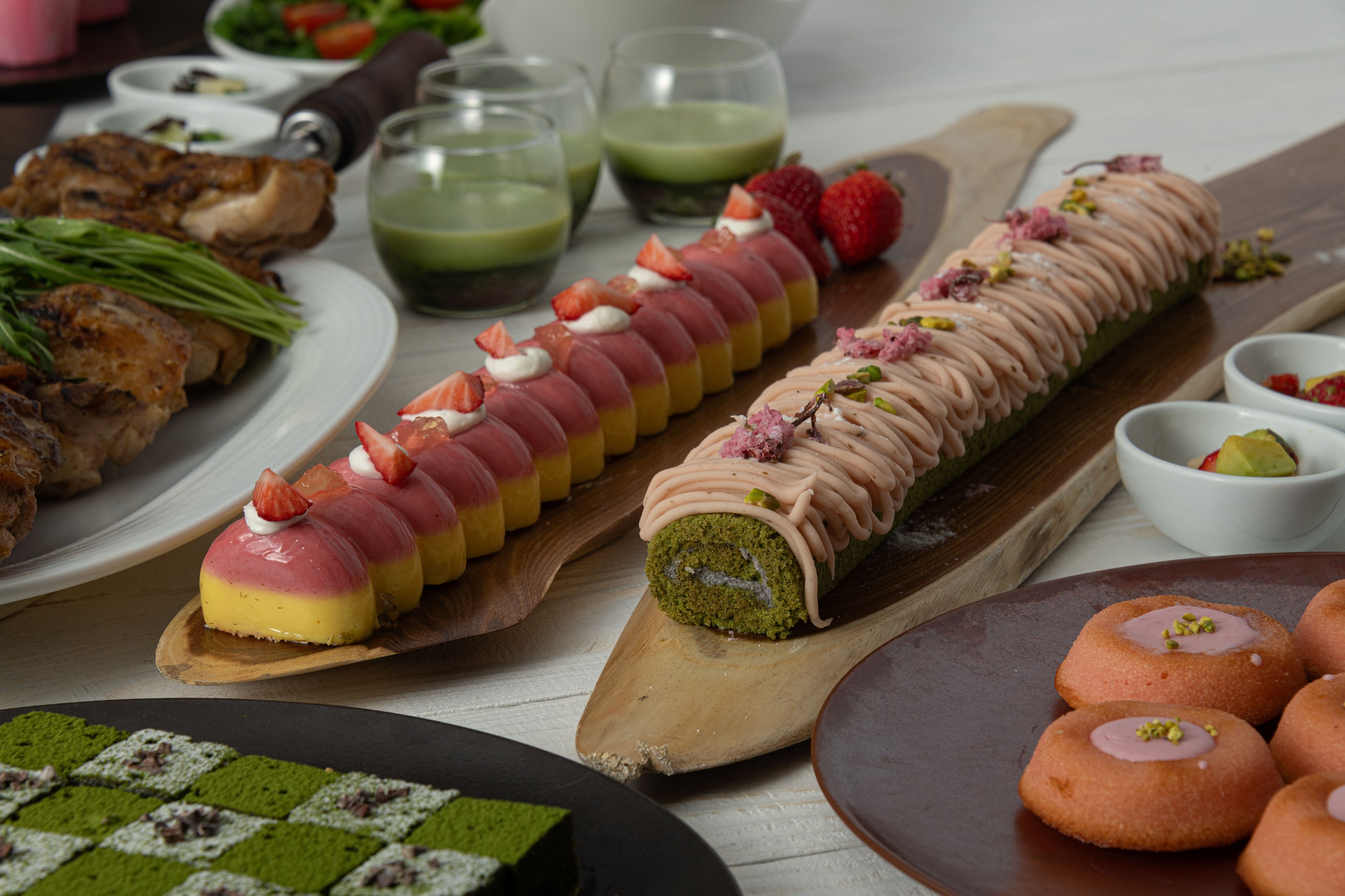 この春限定のビュッフェでは、抹茶のほろ苦さが苺の甘酸っぱさを引き立てるショートケーキをはじめ、和のエッセンスを取り入れた多彩なスイーツが約20種並びます。みずみずしい苺を、旬の時期を通して楽しめる、苺好きにはたまらないラインアップです。ライブキッチンでは、串焼きスタイルで豪快に焼き上げたチキンが登場。さらに、春キャベツや新玉葱、菜の花など旬食材を贅沢に使用した和洋のビュッフェメニューが並びます。金土日・祝日限定のディナータイムには、ボイルド蟹や牛肉の鉄板焼きなど、週末を華やかに彩る特別メニューもご用意。ご家族やご友人、大切な方とのひとときを、彩り豊かな料理とともに、心躍る春の味わいでお楽しみください。