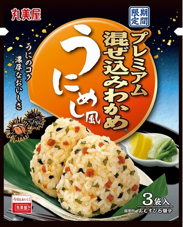 丸美屋食品工業株式会社(本社:東京都杉並区、社長:阿部豊太郎)では、おむすび・混ぜ込み用ふりかけ市場で売上No.1※の「混ぜ込みわかめ」シリーズより、「期間限定 プレミアム混ぜ込みわかめ<うにめし風>」「期間限定 プレミアム混ぜ込みわかめ<松茸>」「期間限定 プレミアム混ぜ込みわかめ<栗ごはん風>」を、2021年8月5日(木)から2022年3月31日(木)までの期間限定で販売いたします。