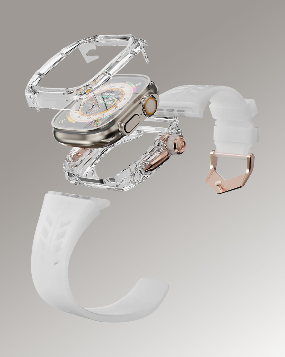 さらに、透明なケースを通じてApple Watchのディテールが引き立ち、アップルウォッチ本体の美しさを際立たせます。どの角度から見ても洗練された印象を与えるデザインです。