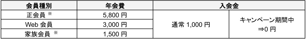 ※会員種別に応じた年会費を別途お支払いいただく必要があります。