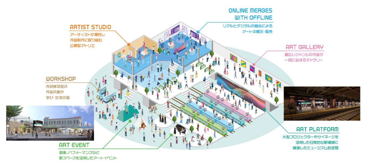 アーティスト活躍の場を拡大するため、制作・販売の拠点整備やJR東日本のリソースを活用した情報発信を行います。また、「アートによる文化創造」という面において、既に開発に着手している「TAKANAWA GATEWAY CITY」とも連携を図り、「都市文化力の向上」をアートの側面からけん引します。