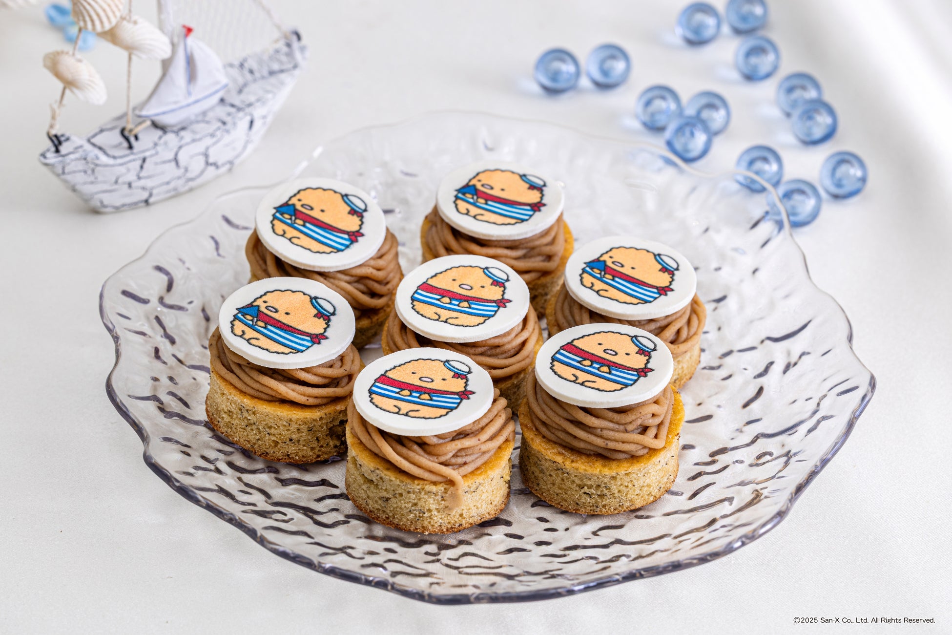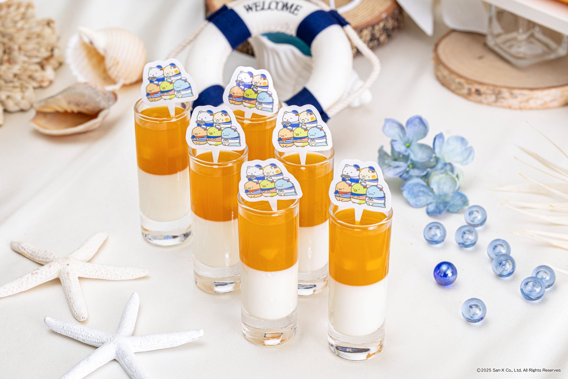 マリンパーティを彩る「すみっコショートケーキ」は、ふわふわとした食感の生地に瑞々しいシャインマスカットを乗せ甘さ控えめの軽やかな生クリームを絞った素材の味を活かしたシンプルな一品です。波打ち際で遊ぶすみっコたちをイメージしたロールケーキ「はまべのすみっコ」は、かぼちゃのペーストを生地に混ぜしっとりと焼き、爽やかなヨーグルト風味のガナッシュを波の様に絞り、すみっコたちのチョコレートをあしらいました。しろくま、ぺんぎん?、とんかつ、ねこ、とかげの形を模った「すみっコゼリー」は、すっきりとしたレモンの風味を感じるゼリーです。また「マリンごっこ」のテーマに登場する、すみっコたちをあしらった「すみっコクッキー」、一口サイズのバナナケーキの上に濃厚な和栗のクリームを絞った「とんかつモンブラン」、スポンジにたっぷり3種のミルクを染みこませた「すみっコ・レチェ」など老若男女問わずお楽しみいただける可愛らしいスイーツをすみっコぐらしの世界観の中でご堪能ください。
