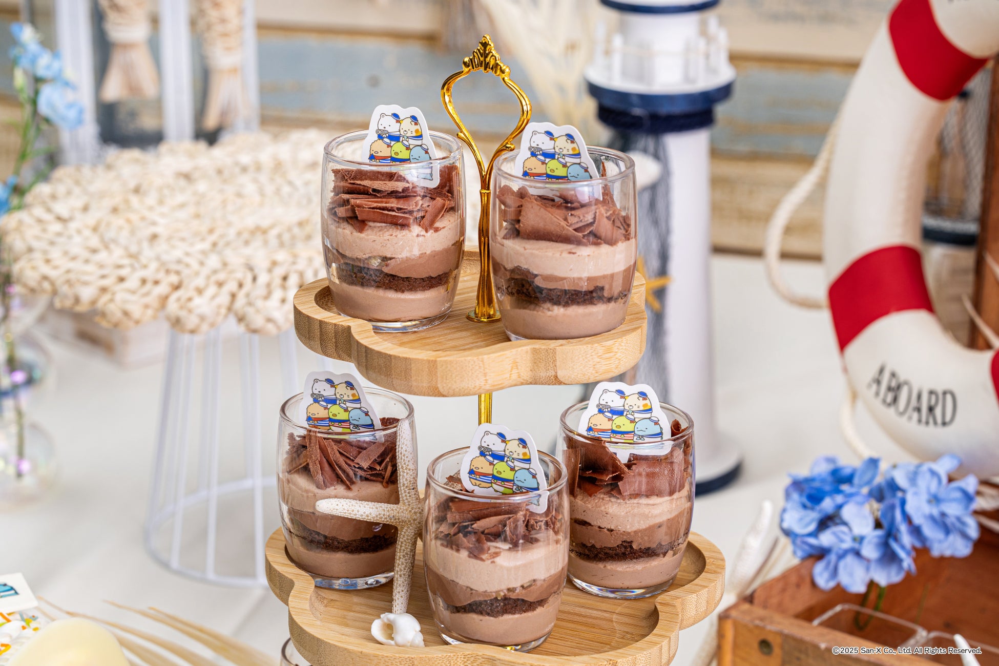 九州で初開催となるすみっコぐらしコラボレーションスイーツビュッフェ「すみっコたちのマリンパーティ」では、マリンスタイルに身を包んだすみっコたちと、すみっコぐらしの「マリンごっこ」のテーマに着想を得た約20種類のスイーツとセイボリー(軽食)をご用意しています。