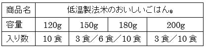 米の保管に最適といわれる15℃以下の低温管理のもとで精米した「低温製法米®」を、新鮮な状態でパックごはんにしています。添加物を使用せず「低温製法米®」と水のみで生産しているため、米本来の風味や甘さ、炊き立てのおいしさを楽しめます。