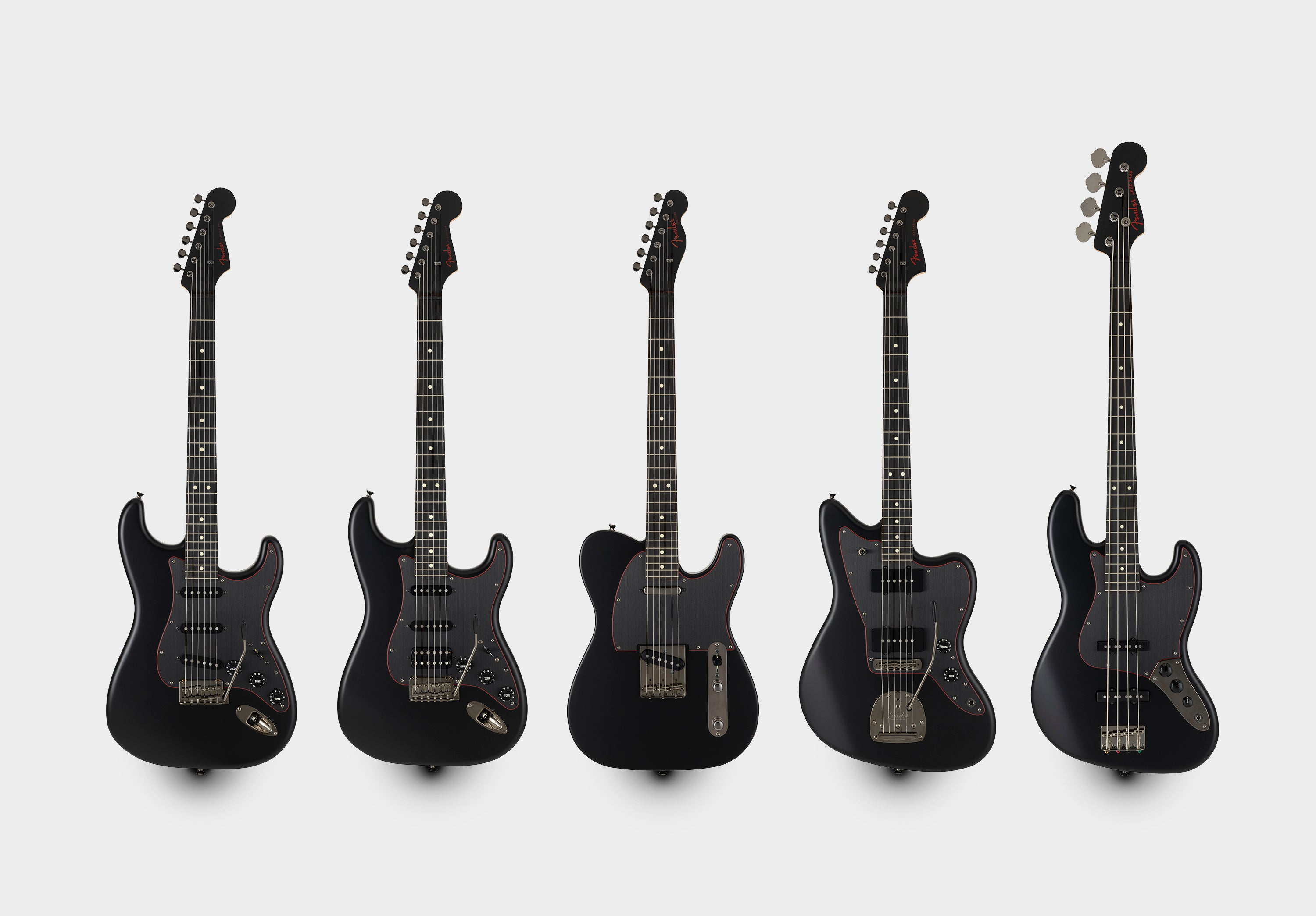『Made in Japan Limited Hybrid II Noir』は、目を引くレッドのセンターレイヤーを纏った3-Plyブラックピックガードを搭載しており、ヘッドのレッドメタルロゴと相まって独特な雰囲気を醸し出します。金属パーツやプラスチックパーツは全てブラックで統一しており、ナットもSynthetic Boneを搭載。よりヘビーな見た目に仕上げています。2022年に発売された「Made in Japan Limited Hybrid II Noir」のTelecaster®︎、Stratocaster®︎、Jazzmaster®︎、Jazz Bass®︎の4モデルに加え、Fender Flagship TokyoならびにFender公式オンラインショップ限定モデルとして、今回新たにHybrid II Custom Voiced Humbucking を搭載した『Stratocaster®︎ HSS』モデルが追加されます。