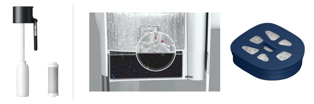 ・鉛や塩素、PFAS、2-MIB(カビ臭)、CAT(農薬)などの有害物質を除去するナノゼロフィルターを採用(アドバンスドフィルターを搭載しています。)