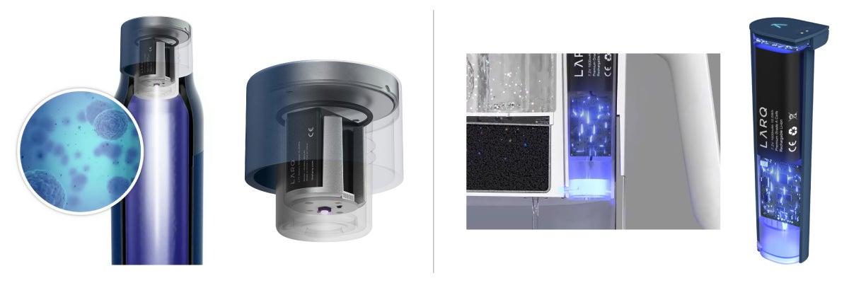 ・LARQ独自の「PureVis」テクノロジーにより、短時間で大腸菌などの生物学的汚染物質をUV除菌