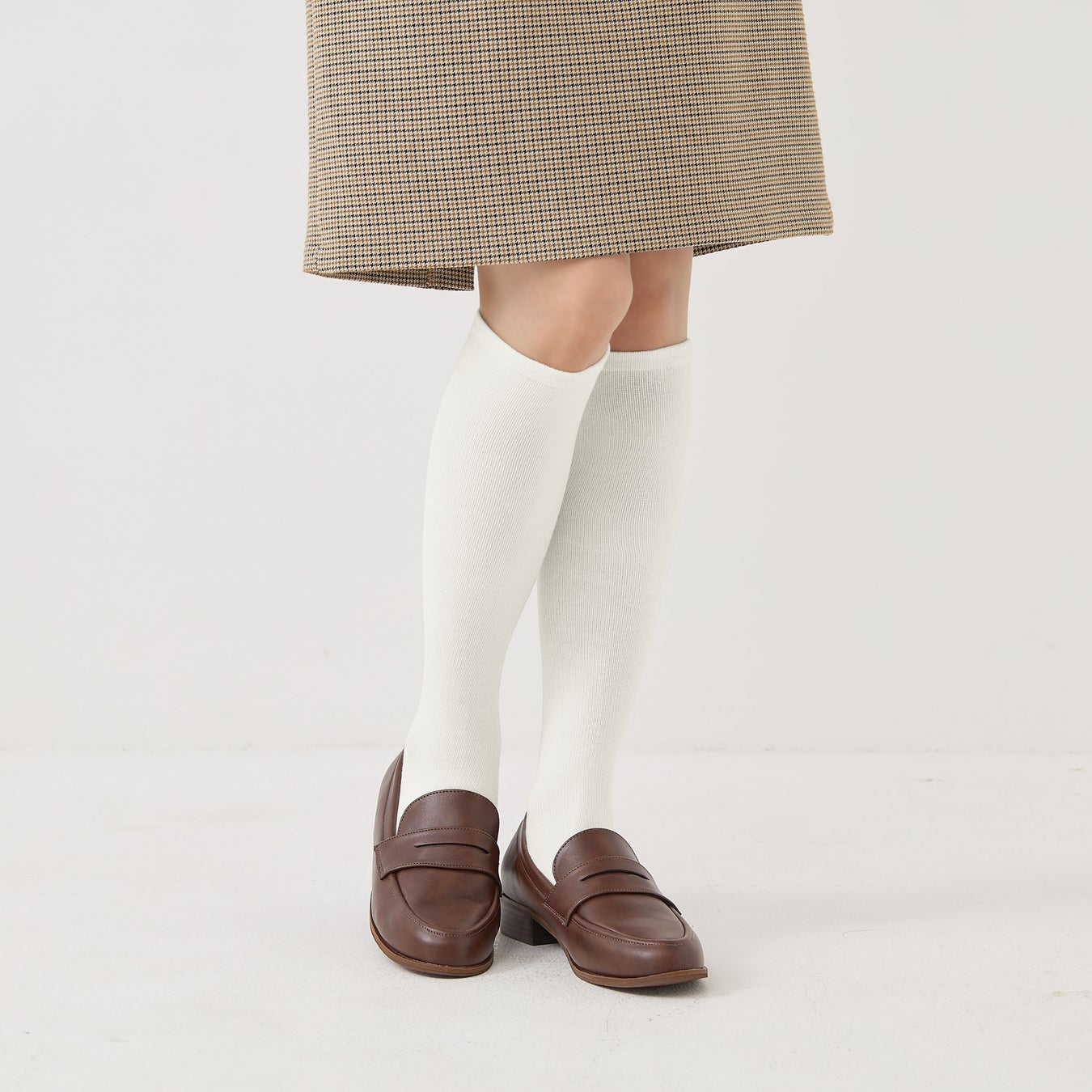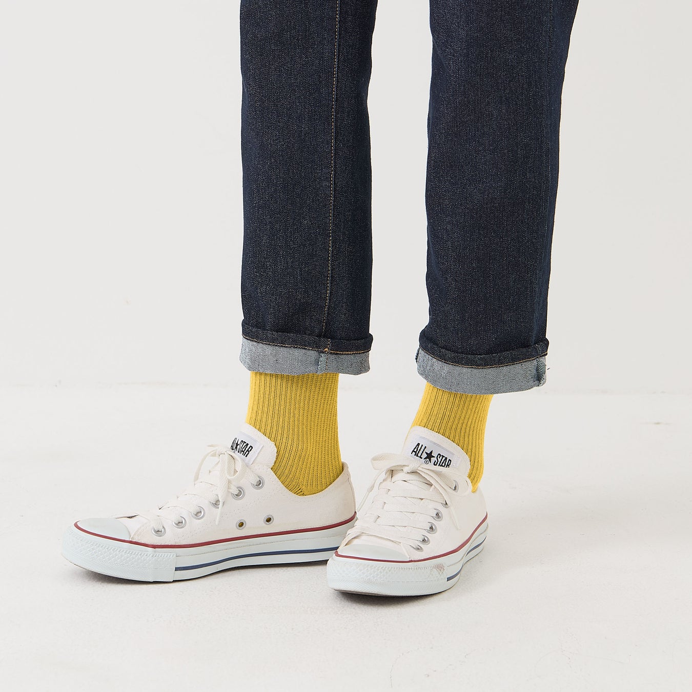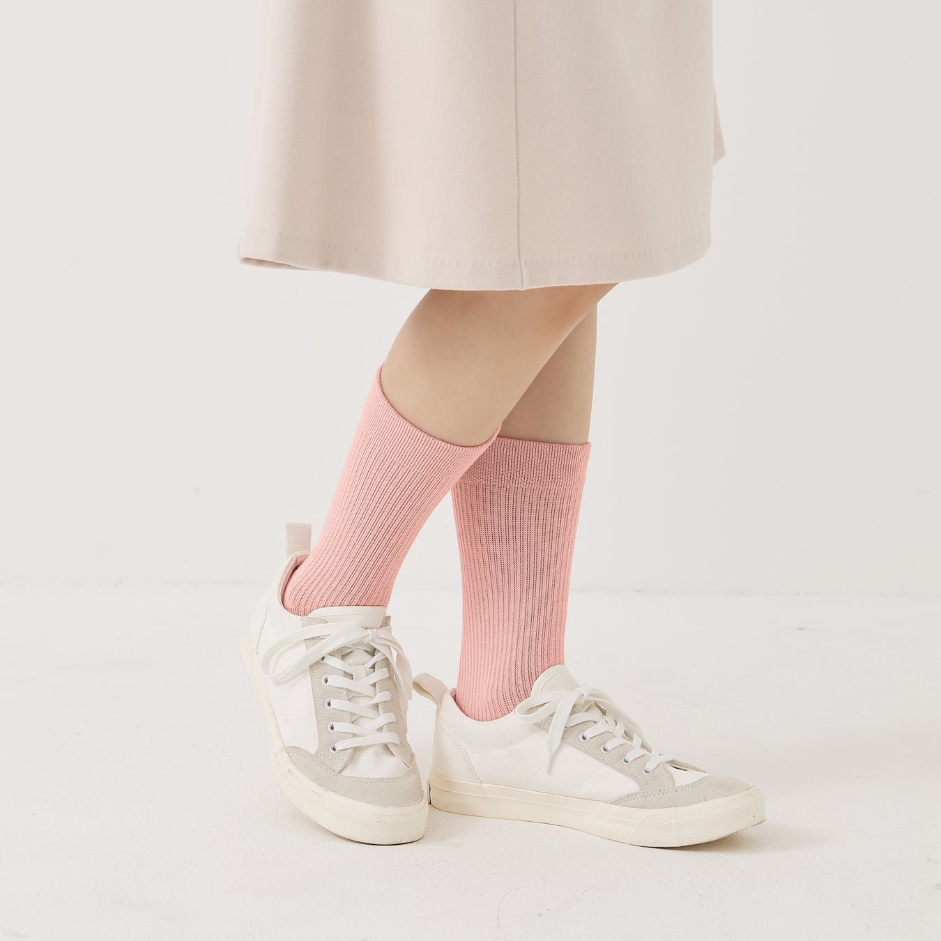 パンプスやローファーもすっきり履けて、きれいめコーディネートも楽しめる薄手の無地タイプと、スニーカーやブーツなどカジュアルな靴にもぴったりのリブタイプの2タイプ