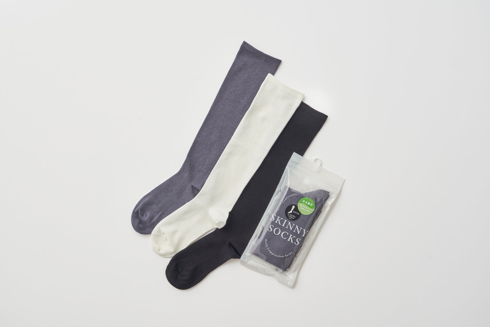 そこで、着圧なのにラクに履けて、普通の靴下の延長線上で日常的に履けるおしゃれな着圧ソックス「SKINNY SOCKS」を開発しました。