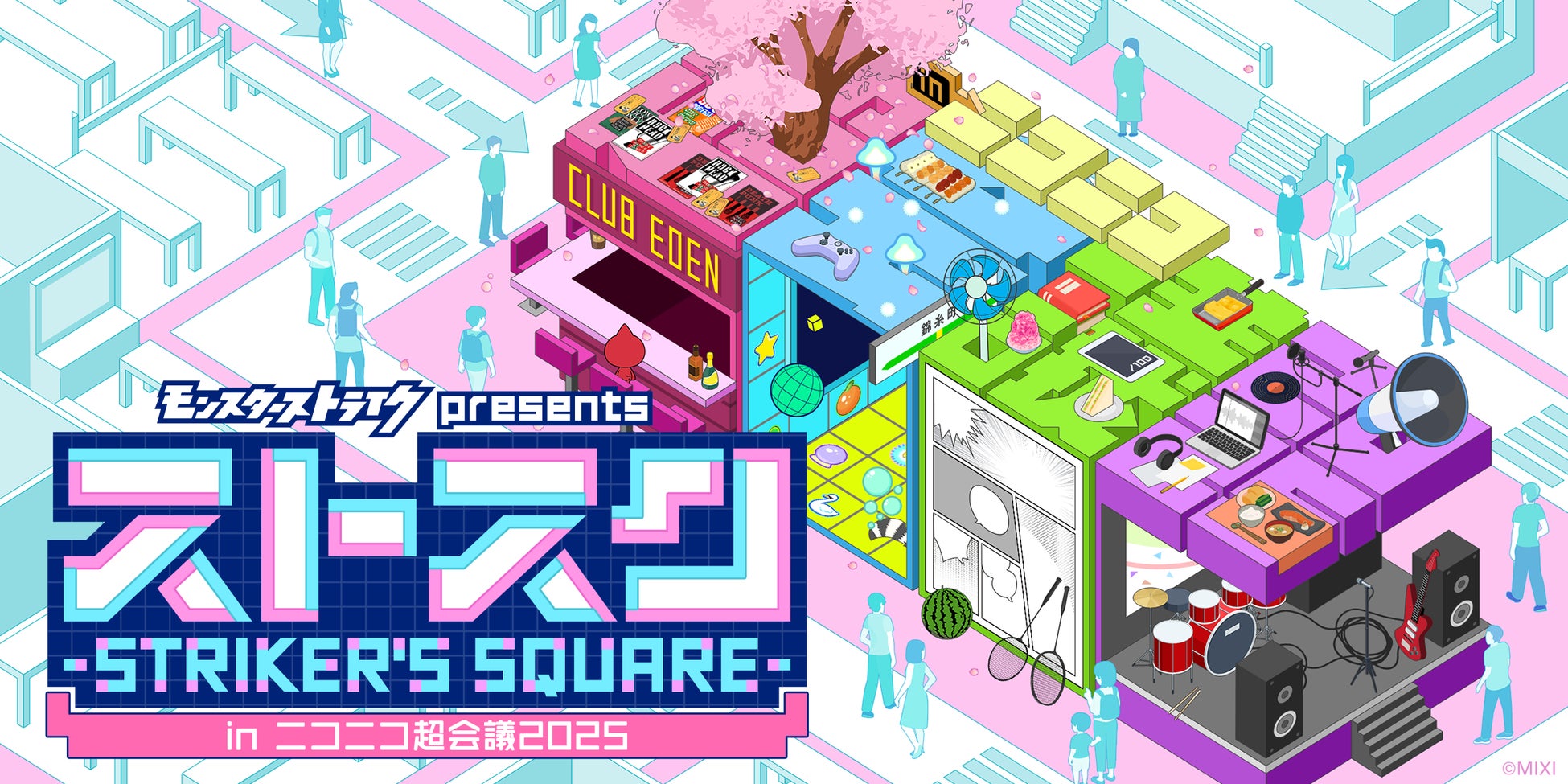 株式会社MIXI(東京都渋谷区、代表取締役社長 上級執行役員 CEO:木村 弘毅)は、2025年4月26日(土)27日(日)幕張メッセ 国際展示場で開催される超巨大イベント「ニコニコ超会議2025」にブース出展し、スマホアプリのひっぱりハンティングRPG「モンスターストライク」(以下モンスト)のオフラインイベント「モンスターストライク presents ストスク -STRIKER'S SQUARE- in 超会議2025」を開催します。