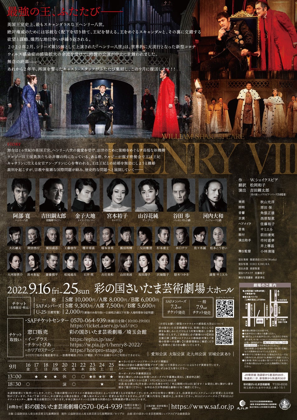 【吉田鋼太郎 演出&出演、阿部寛主演】2022年9月上演 彩の国シェイクスピア・シリーズ『ヘンリー八世』埼玉公演チケット販売スケジュール決定