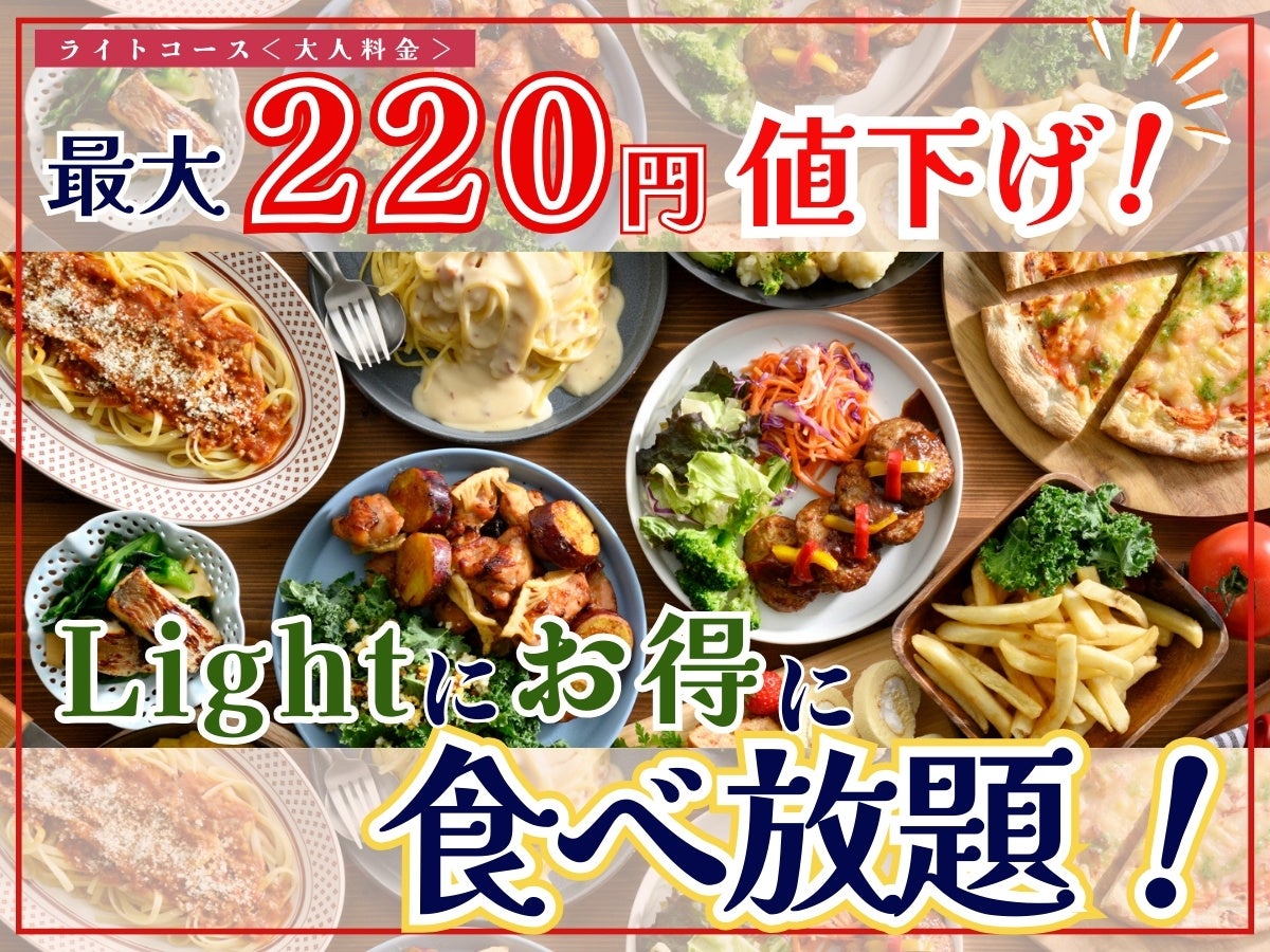 この度、よりお得にお気軽に食べ放題をお楽しみいただけるよう『ライトコース』の大人料金を最大220円値下げいたします!