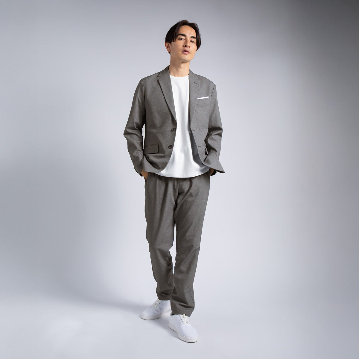 特徴:見た目を損なわない細かな通気孔があいた、高温多湿の夏に適した独自開発素材「ultimex COOL/アルティメックスクール」を使用。夏用スーツあるあるの透け感を限りなく無くし、シャツや下着が透けない設計。高ストレッチ性で、速乾と撥水に優れているので汗によるべたつきを解消し、突然の雨にもしっかり対応。胸ポケットは、出し入れ可能なフェイクチーフ付き。パンツはウエストゴムとドローコードでウエストの調整が可能。さらに右ポケット横のコンシールファスナーポケットで落としたくない小物類を収納可能。
