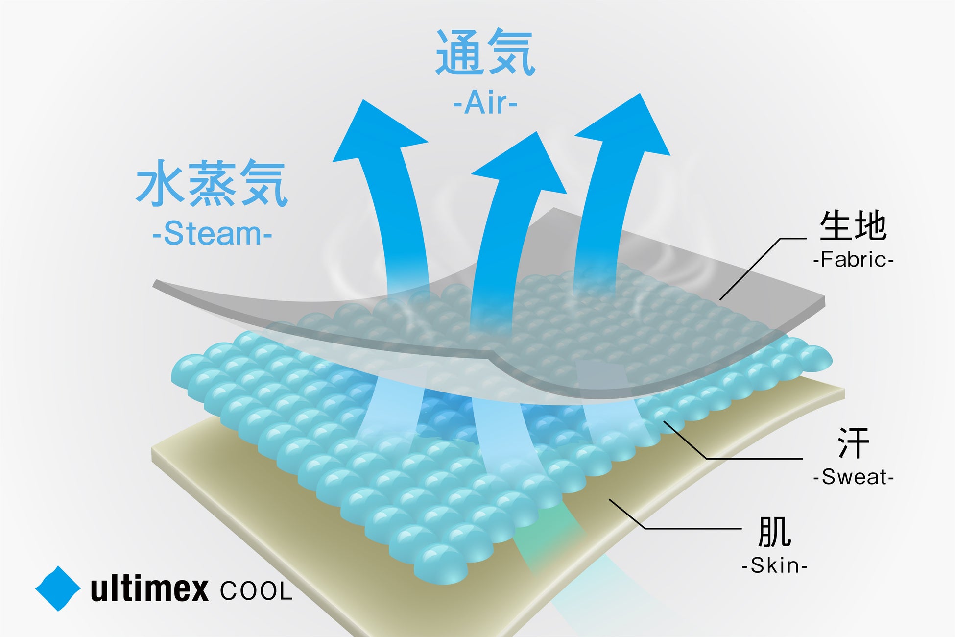 本商品は、高温多湿の夏に向けた独自開発素材「ultimex COOL/アルティメックスクール」を使用。通気性を極限まで上げつつも見た目を損なわない細かな通気孔が、蒸れにくく快適な着心地を実現。さらに、ジャケット・パンツ合わせて592g*と軽量で、伸縮性のある糸をメッシュ調で編み込んでいるため、ストレッチ性も抜群。腕や肩回りの可動域を広げ、スーツ特有の堅苦しさから解放します。