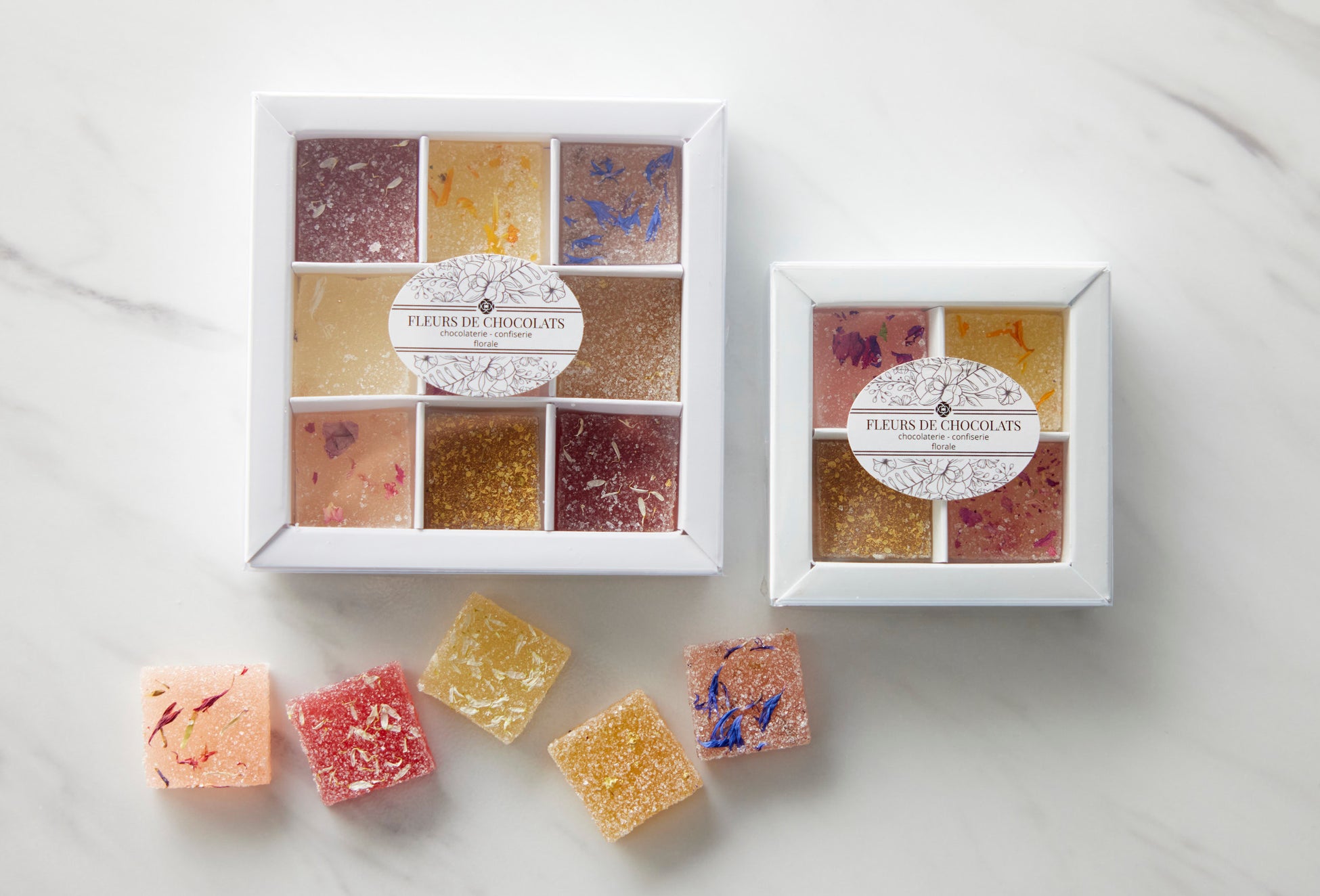 フランスの有機栽培でつくられた花を丁寧に抽出し、豊かで多様な香りが漂うパートドフルールは伝統的な製法と革新の融合でうまれた唯一無二の味わい。香水の聖地ともいわれる南仏グラースの調香師がおこなう技法で、抽出したフラワーウォーターを使用。箱を開けると、ふわっと花の香りが広がります。