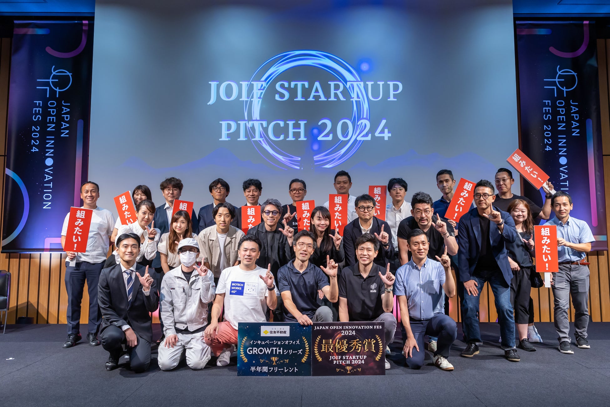 JOIF2024当日に実施したふたつのピッチイベントでは、【スタートアップ企業の発信の場「JOIF STARTUP PITCH 2024」】の最優秀スタートアップ企業に株式会社ファーメンステーションを選出、【共創企業がチームを組みその成果のプレゼンテーションを競い合う「JOIF COLLABORATION BATTLE 2024」】の最優秀コラボレーション企業に株式会社FUJI × 株式会社Roxyが決定しました。