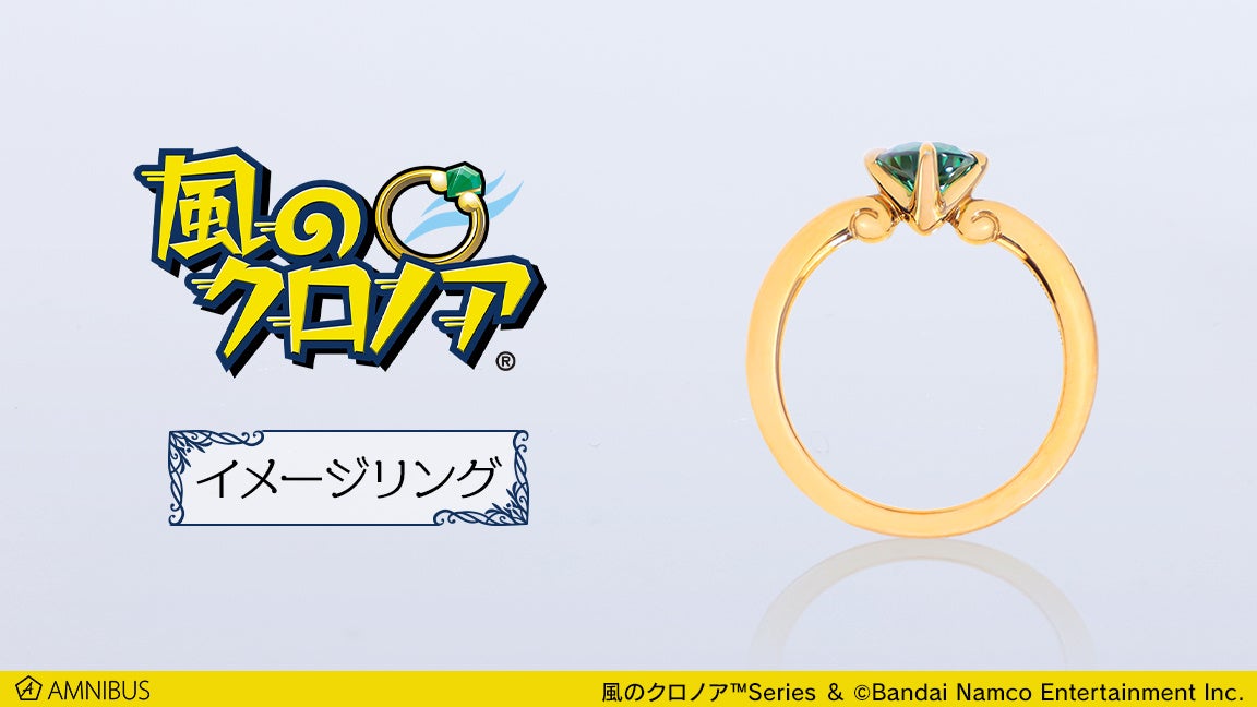 【風のクロノア】コラボ。イメージリング(指輪)。ゴールドに輝くリングに大粒のグリーンストーン。AMNIBUSサイトで5月9日(木)まで予約受付