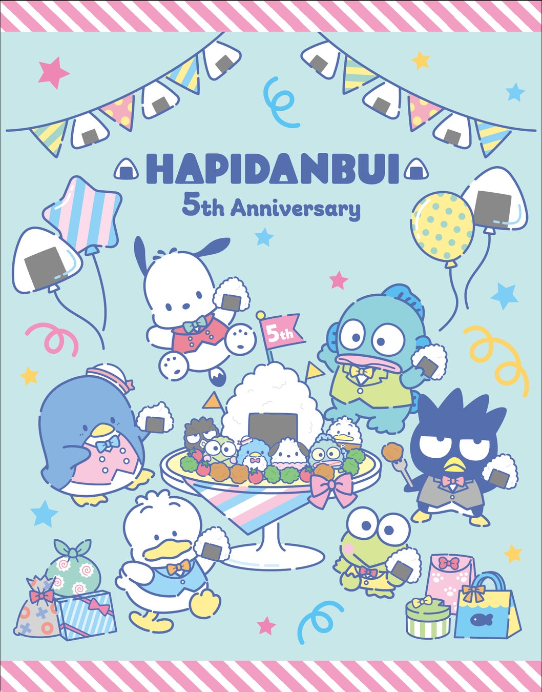 5周年を記念したテーマカフェ「はぴだんぶい わいわいピクニックカフェ」を1月31日(金)より期間限定で東京・愛知・大阪の3都市で開催し、5周年を祝う楽しいピクニックメニューが登場します。また、3月22日(土)よりおむすびパーティをテーマにしたポップアップショップも開催いたします。