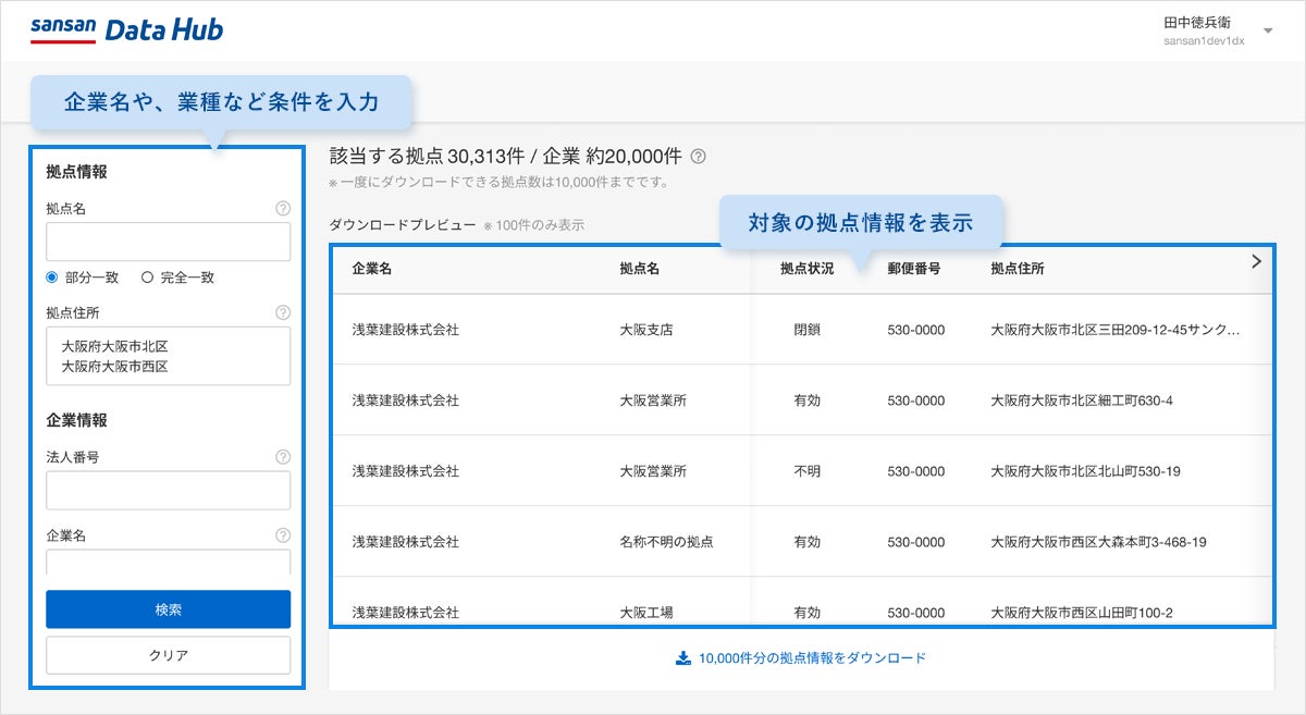 働き方を変えるDXサービスを提供するSansan株式会社は、営業DXサービス「Sansan」に600万件の拠点情報を新たに搭載しました。また、それらの拠点情報を住所・業種などで絞り込みリスト化することで、営業戦略立案やターゲットリストとして活用できる新機能「拠点情報ダウンロード」を実装しました。