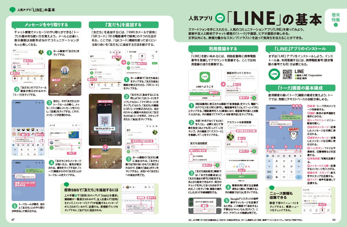 LINEの基本的な使い方の解説や困ったときのQ&Aも収録