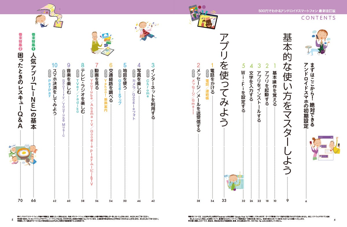 手順の解説には、人気のGoogle Pixel 7aを使用しており、最新OSであるAndroid 14にも準拠。これからAndroidスマホを使い始める方に最適な1冊です。