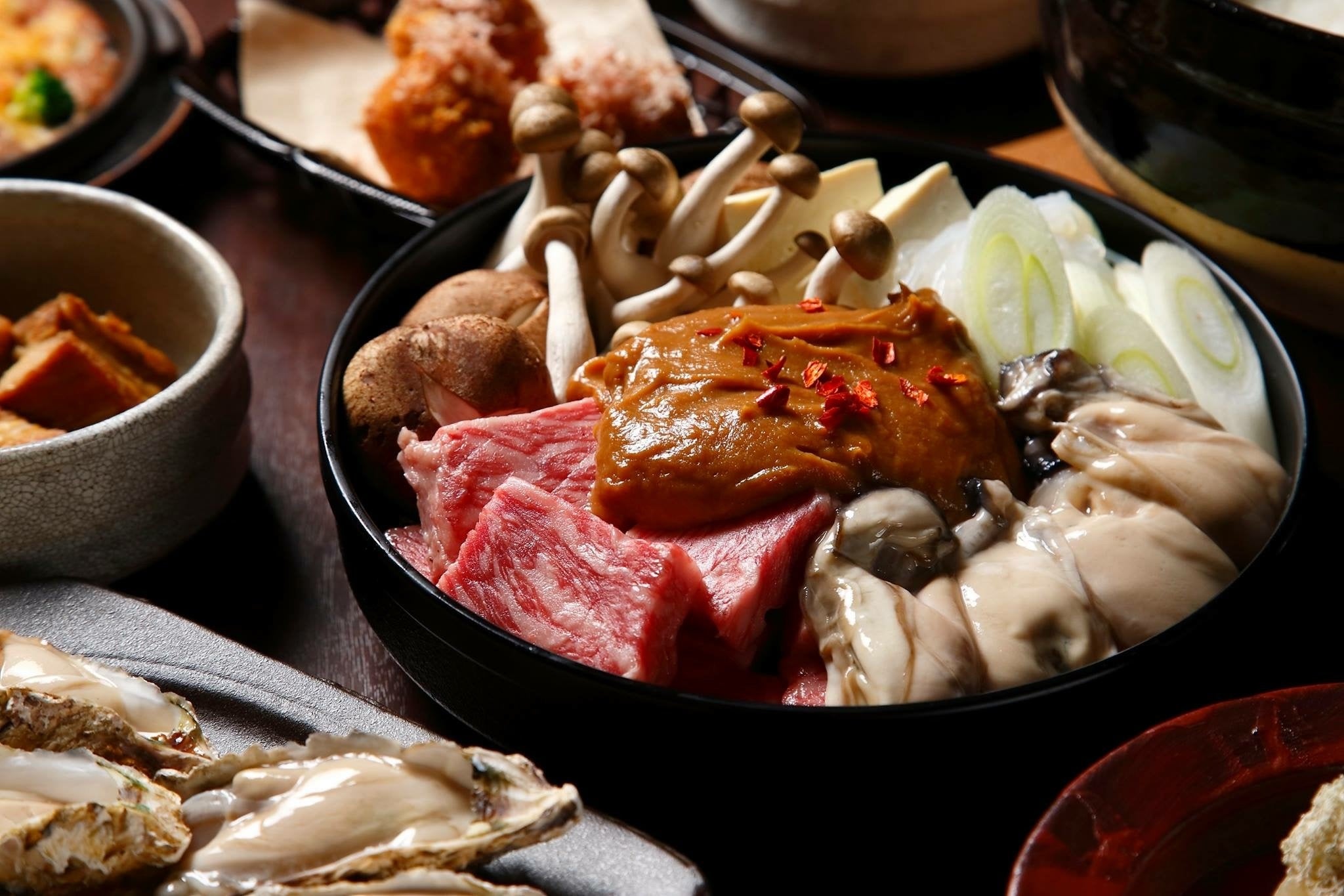 - 名物は厚切りA5黒毛和牛をオリジナルブレンドの特製味噌で炒め焼く牛鍋。一度食べたら虜になるうまさ!