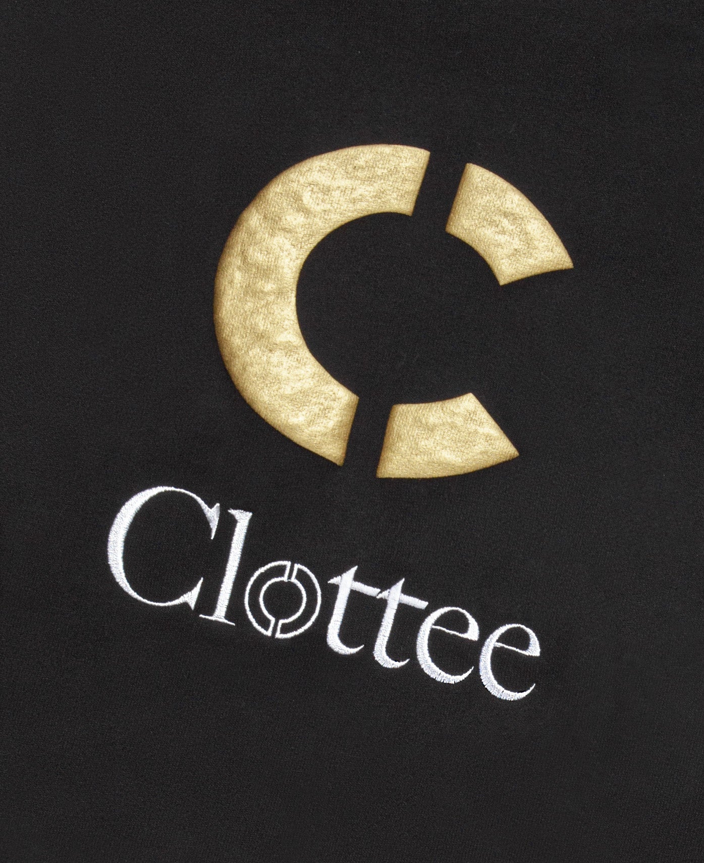 アパレルラインでは、クルーネックスウェット、Tシャツがラインナップ。ウェア類はゆったり目シルエットのシンプルなボディにコラボを表す両者のアイコニックなロゴを起用。フロントには「atmos」を刺繍して、バックスタイルに「Clottee」のCをプリント特徴的なセリフフォントを刺繍でアレンジしたストリート感満載な装いで仕上げています。