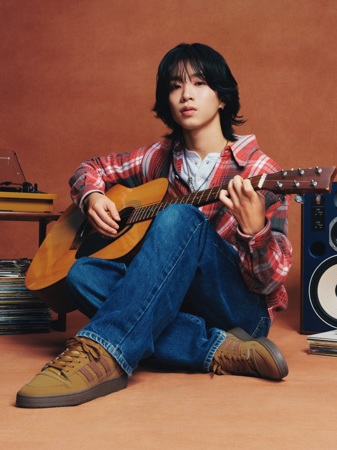 ギターを奏でる穏やかな表情や、レコードに囲まれたナチュラルな世界観は、森さん自身のライフスタイルを投影。シンプルながらもどこか温かみのあるスタイリングで、“日常の中にある特別な瞬間”を表現しています。今回のビジュアルには、森さんの“リアルな等身大の魅力”と、アディダス「BREAK START」が持つクラシックなデザイン性が融合。ファッションとしてもライフスタイルとしても、長く愛せる一足として提案します。