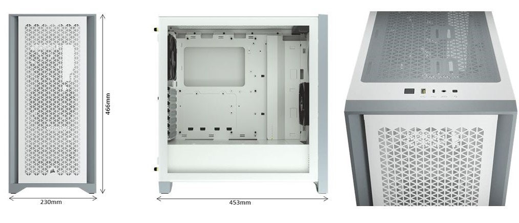 高性能PCを支えるケースは、PCコンポーネントでも人気のCorsair製『4000D Airflow』を採用。フロントに通気性の高いメッシュパネル、サイドパネルに強化ガラスを採用したミドルタワーケースです。システム部と電源ユニットを独立したチャンバーで分けることで互いの排熱による影響を与えない効率的なエアフローを確保しています。