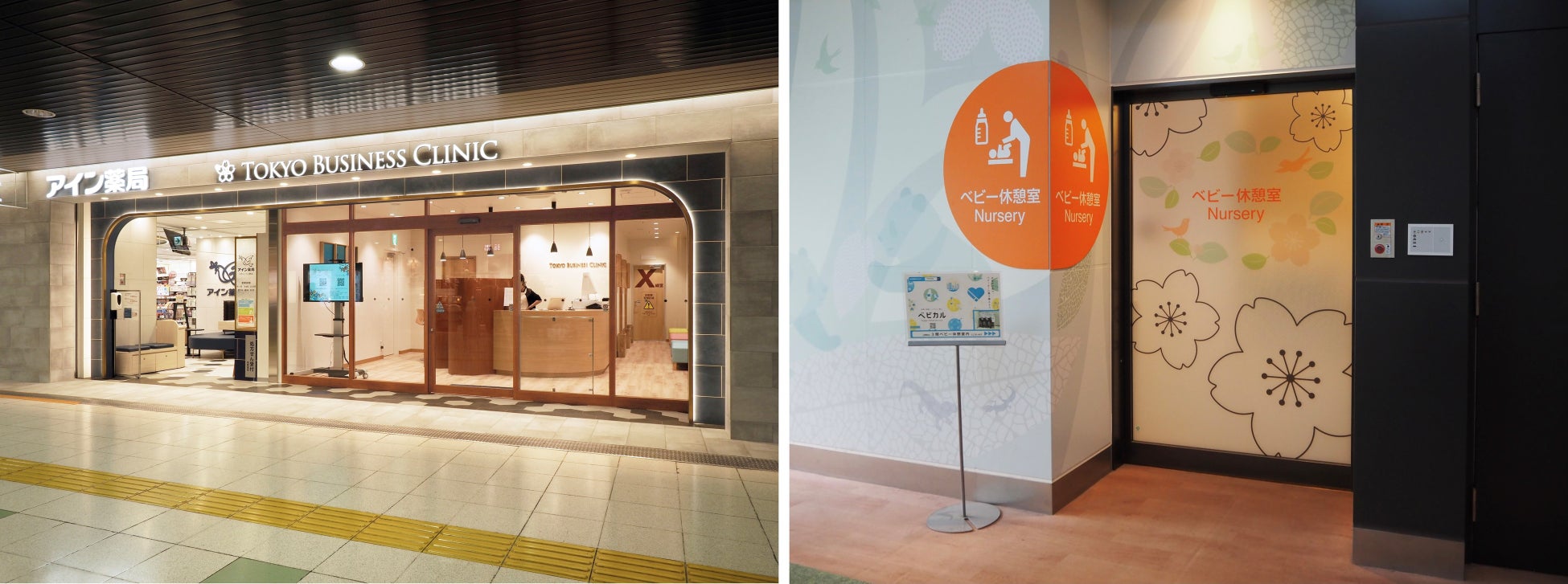 ばんそうこうや、おむつ・おしりふきだけでなく、離乳食やベビー飲料まで幅広くお取り扱いがございます。また急な発熱や発疹などにも対応可能なエキナカクリニックも。いざというときの安心が揃っています。