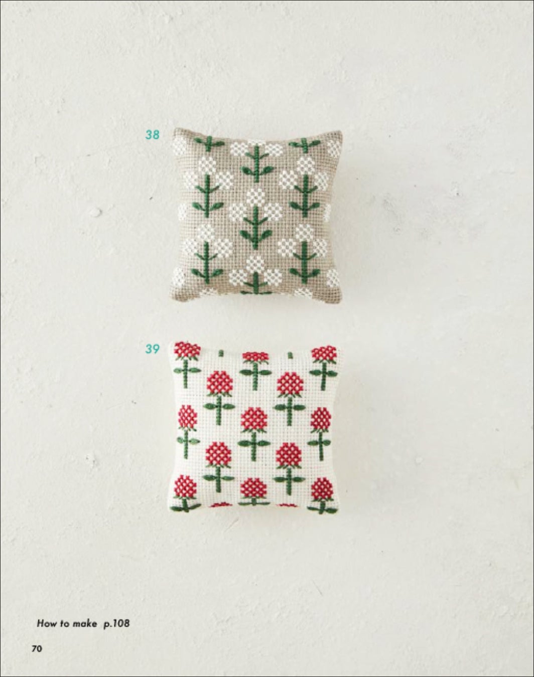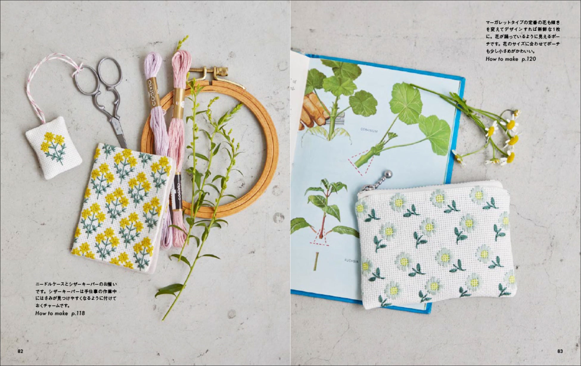 小さくてかわいい花ばかり、55種類の図案を掲載。フランス刺繍の数種類の基本中の基本のステッチを、布目を数えて刺すので初心者から楽しめます。お花をひとつだけ刺しても、連続して広がるように刺してもどちらもかわいい、応用のきく刺繍です。