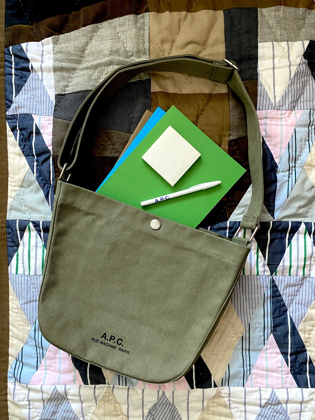 生地は二重構造で厚みを持たせることでデザイン性及び耐久性に優れ、これからの季節のレジャーシーンにも最適。シルクスクリーンプリントのA.P.C.ロゴがさりげないポイント。