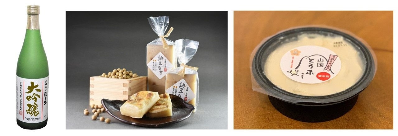 京北の採れたて野菜、乾燥しいたけ、納豆もち、とうふ、みそ、あられ、京北米、みそカステラ、