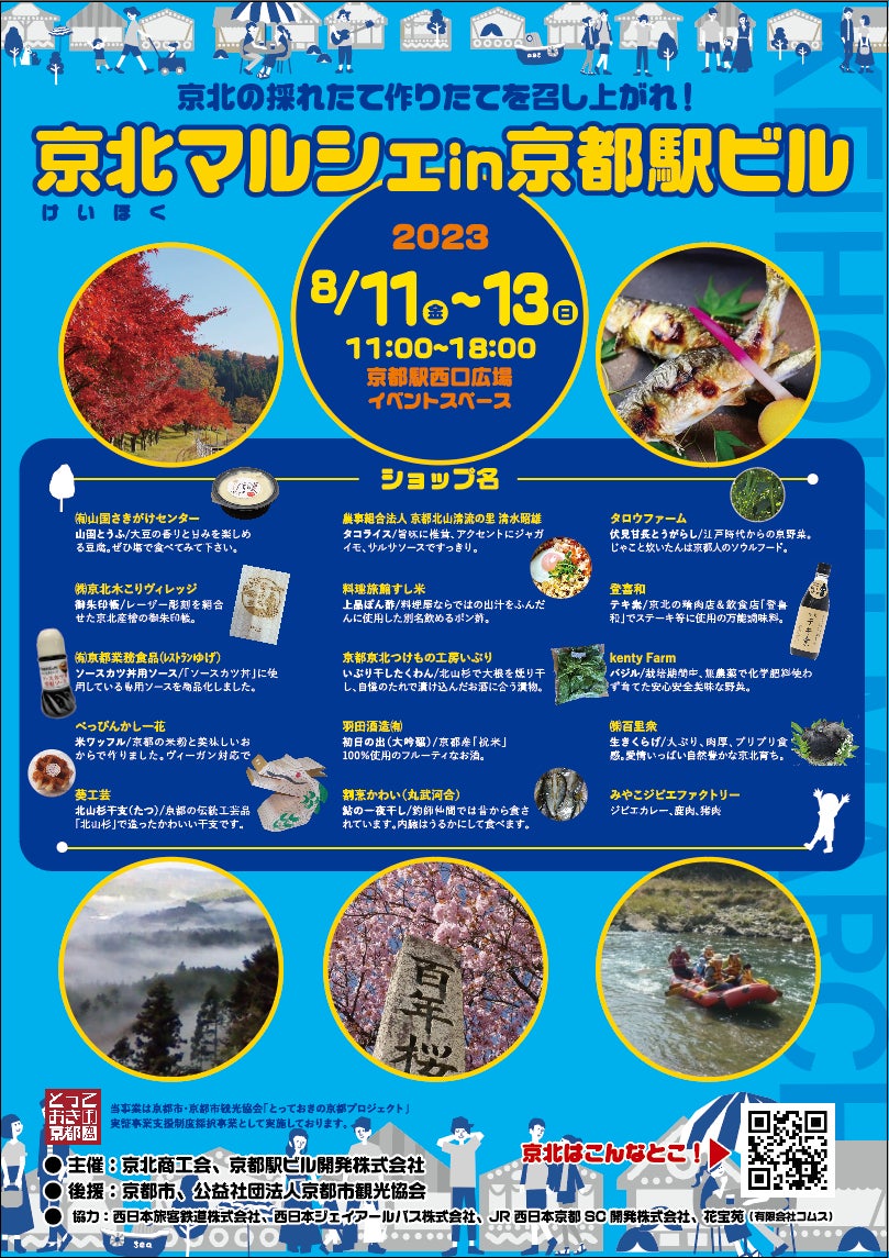 京北商工会および京都駅ビル開発株式会社は、京北エリアの地域振興を目的に、京都駅ビル内におけるマルシェイベントを下記のとおり開催しますので、お知らせします。