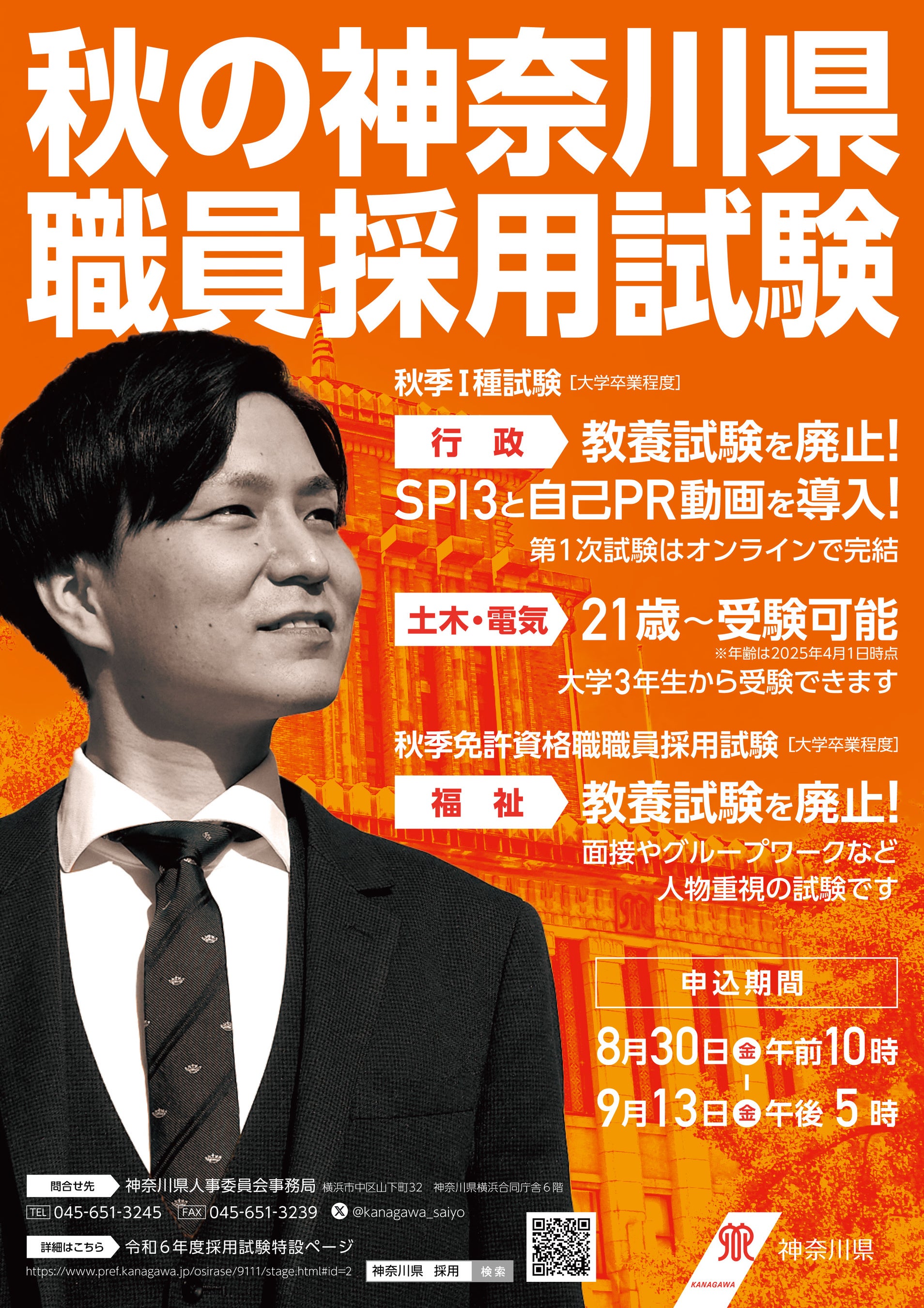神奈川県では秋の採用試験の募集を開始しました。今年度はSPI3の導入や受験資格の見直しを行うなど試験をリニューアルし、より受験しやすくなっています。