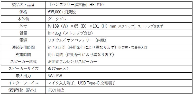 製品名・品番:「ハンズフリー拡声器」HFLS10